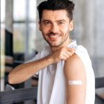 uomo guarda cerotto sul braccio dopo vaccinazione